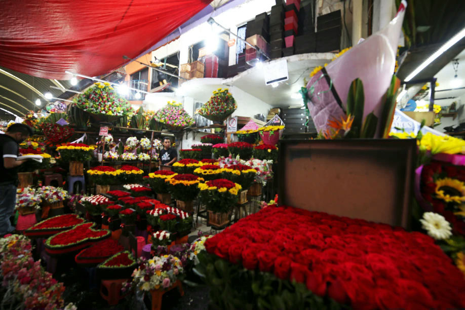 This market was built in the1950s as a government project, to modernize Mexico City’s markets. It is one of my favorite places. Upon entering, the smell of flowers hits your nose, while the variety of colors takes shape in front of your eyes. Long aisles of flowers offer sunflowers, gerbera daisies, alstroemerias, flower arrangements for wakes, funerals; you can buy sacks of petals, Winnie the Pooh figures made with yellow flowers, or hearts in the shape of Mickey Mouse, bouquets for brides; the variety is infinite.
