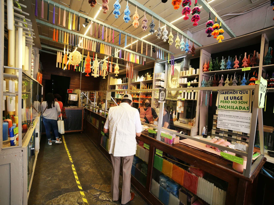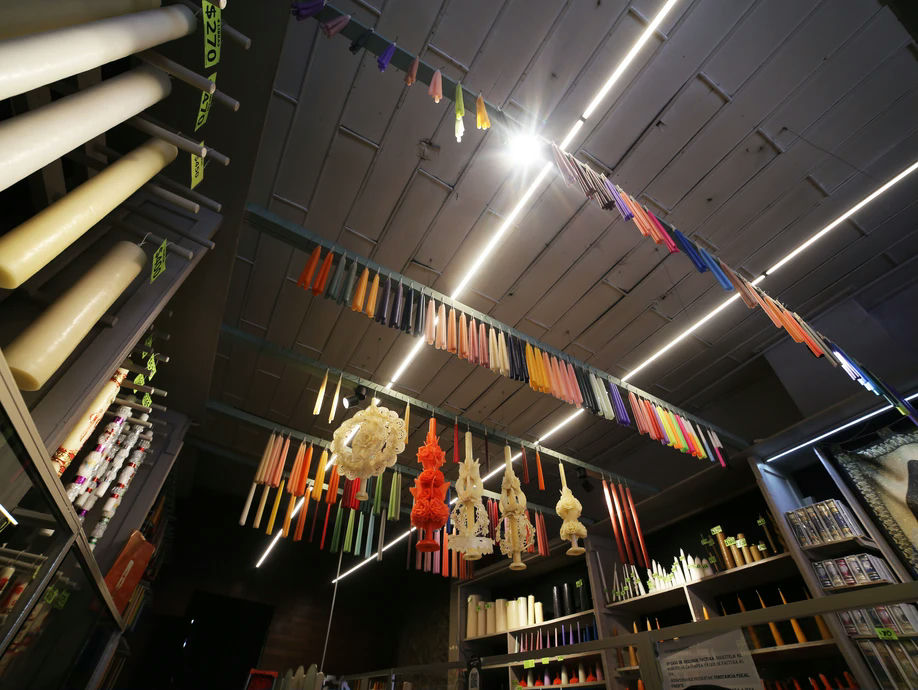 The Jesus Chandlery (Cerería de Jesús) was born in the 19th century in the Huasteca region of Hidalgo. In early 20th century it was established in Mexico City. Today it is a small place in the Historic Center, hidden among dozens of stores. For those who do not know it is there, it hides among the street stalls. However, from the time it opens until it closes its doors, people come and go to order or pick up merchandise. It is said that the artist Dolores Olmedo or the famous Architect Luis Barragán bought their candles there. I got to know the place touring the Center in search of red velvet. From the beginning I was fascinated by the designs, all original, and more than once I have returned to buy candles for film projects, to make altars for the dead, or simply for the pleasures of going to see what ́s new. The factory is located in the back room and friendly ladies behind the counter are always willing to share an anecdote as they show customers the catalog and options.