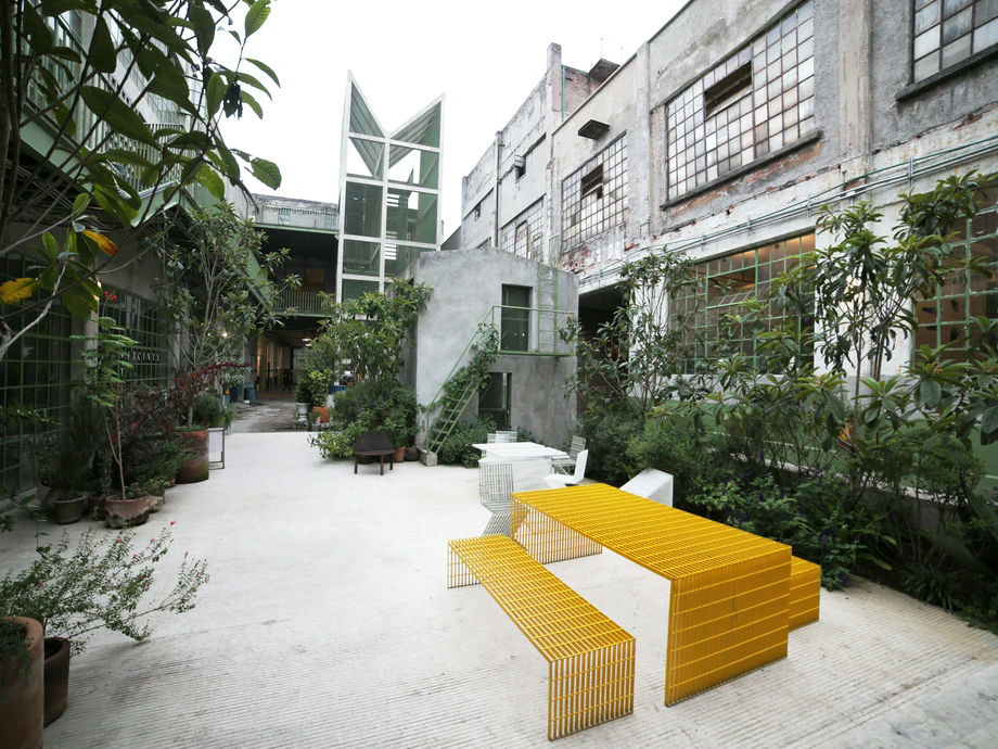 The Laguna building dates from the 1920s, and was initially a thread and lace factory that operated until 2015. In 2018, construction started to adapt the building for creative and production spaces. Today, 24 different maker-spaces coexist, revolving around art, architecture, design, gastronomy, ceramics, education and sustainability. Inside, the creative atmosphere is immediately felt: you can drink a coffee at “Buna” while enjoying the energy of the building; you can see the work at the experimental factory of ceramics Ánfora; visit some art exposition; get near one of the original machines at the factory, that are now a part of the decoration; have a beer at the Mini Bar (small pub). From every corner, the vibe is spectacular.
