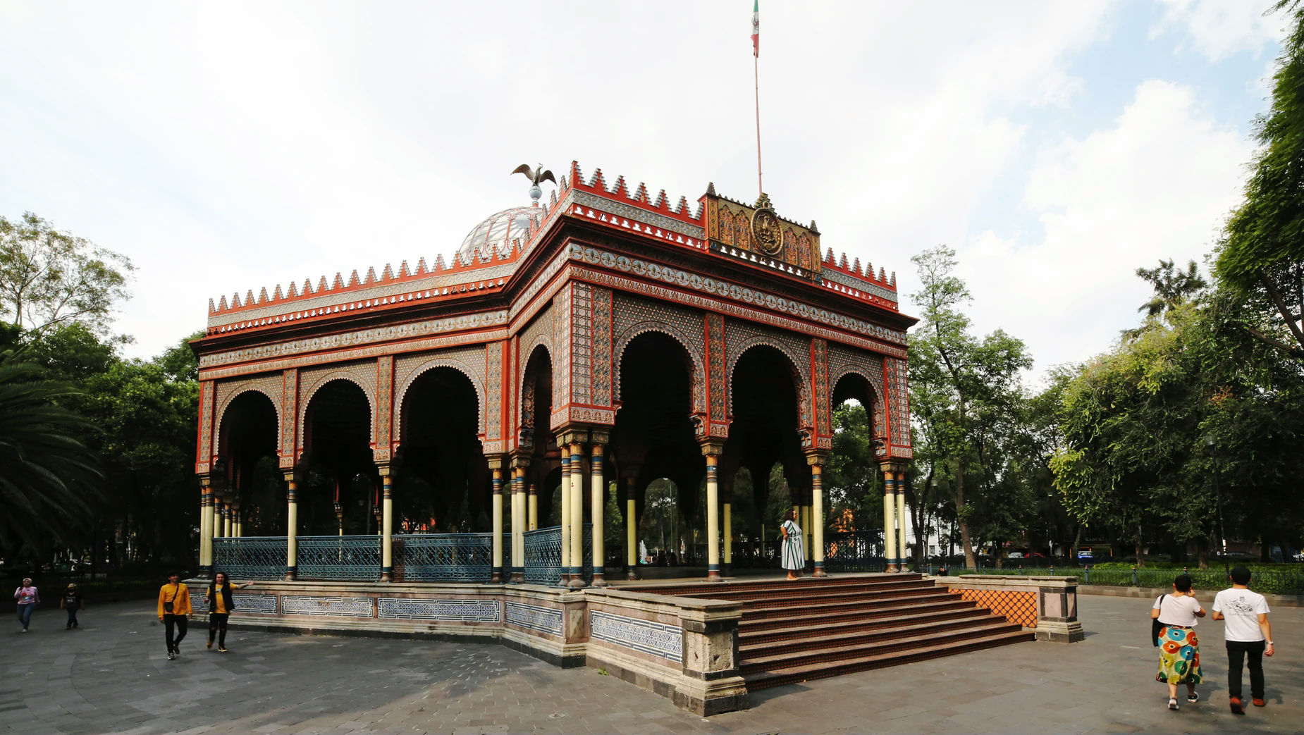 Of great historical and architectural value, the colonia is considered the first modern subdivision of the city. Some of its streets have been drawn on the city map since 1861. Walking through its streets is a delight as you can see facades from the Porfirian period (1861-1911), and constructions that were added over time. In the Alameda Park is the Moorish kiosk, designed in the 19th century by the engineer José Ramon Ibarrola. The kiosk is built entirely of iron. On weekends, dance classes are given inside for the people of the neighborhood and art student are constantly seen around it drawing the structure. The kiosk has been filmed several times, for example, it appears in a Mexican firm called "Ámbar" (1994) by director Luis Estrada. Having had the opportunity to visit that set when it was being filmed, this experience is one of the reasons I now work as a production designer, and for that I have infinite affection for the kiosk.