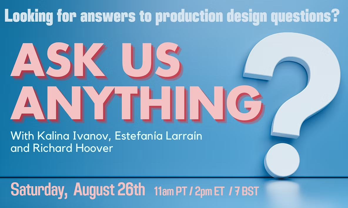 Join the second installment of the "Ask Us Anything" sessions, bringing together experienced designers to answer questions and lead an open conversation on all things production design.