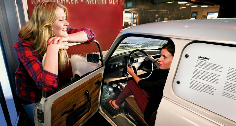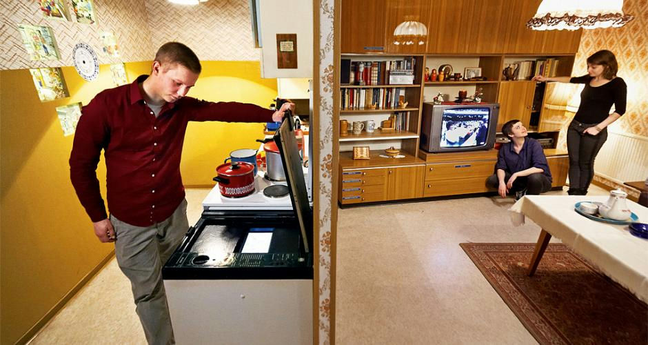 The permanent exhibition takes its motto ‘history to touch and feel’ quite literally: visitors enter a 1:20 scale model of a typical GDR prefabricated high-rise estate; Information and exhibits are stowed away and hidden in drawers, closets and behind doors; The exhibits can be touched and used, the kitchen still has the cooking smells of way back when, and a trabi is available to take visitors on a virtual tour of the area.