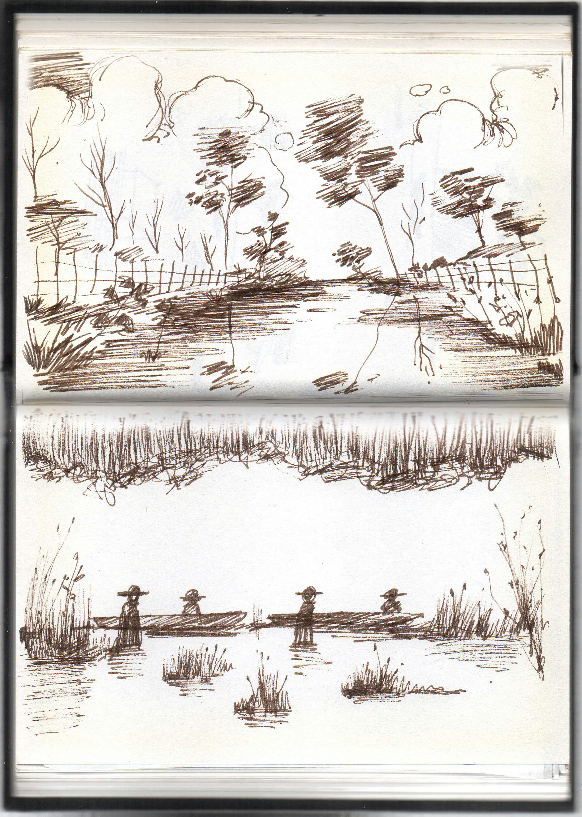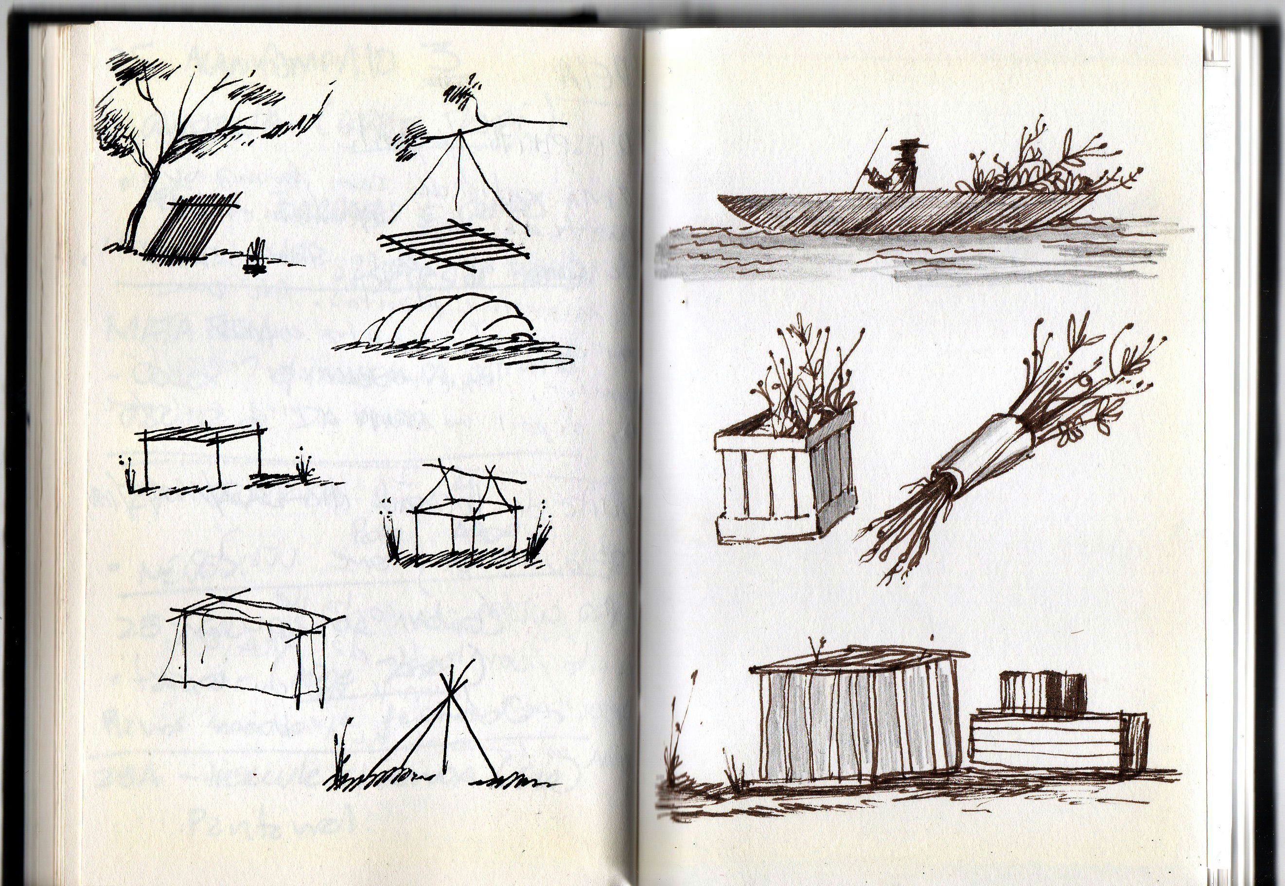 The last feature I did as production designer, "Light in the Tropics", was about a very famous expedition that took place in 1890s, about artists and scientists exploring the forests and landscapes of Brazil. As we followed the path taken by them, I used the same tools to capture the images, pencil and sketch diaries. Later on, those sketchbooks helped me to understand and to relate with that atmosphere. I drew and wrote about the locations, the nature, the local people etc... These image notes helped me to design this particular film, where it was more about discovering things; locations, stories, scenes, textures, objects and bringing it to our film's reality and plot.