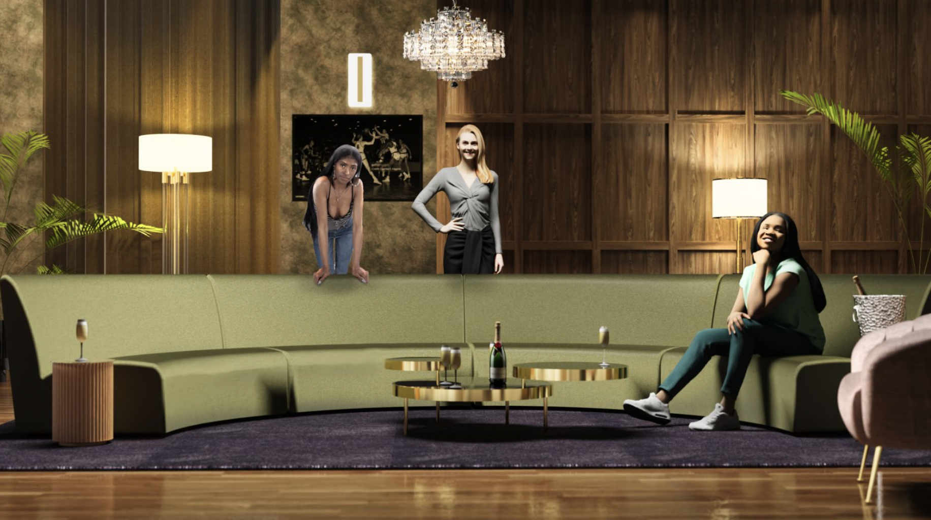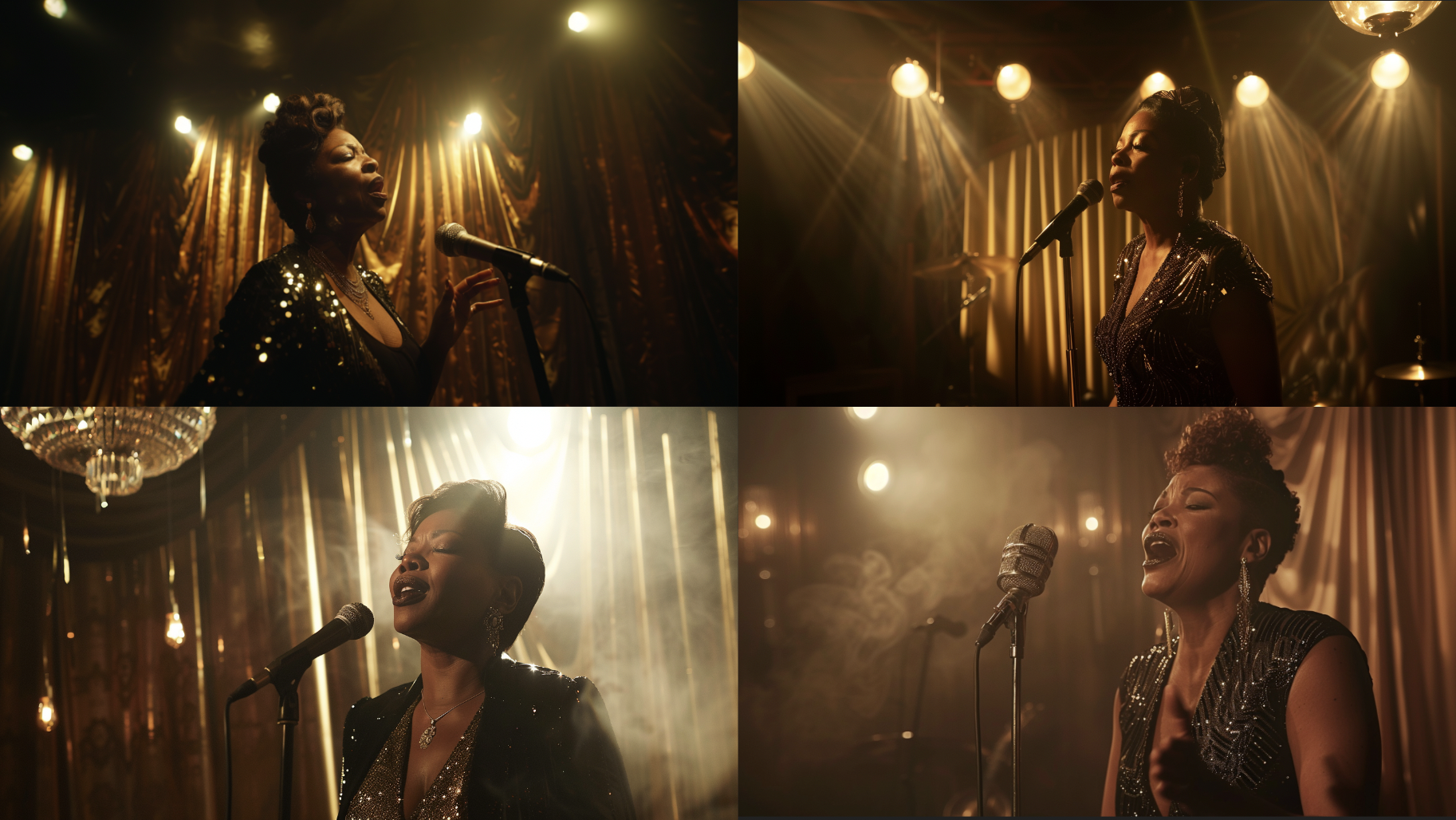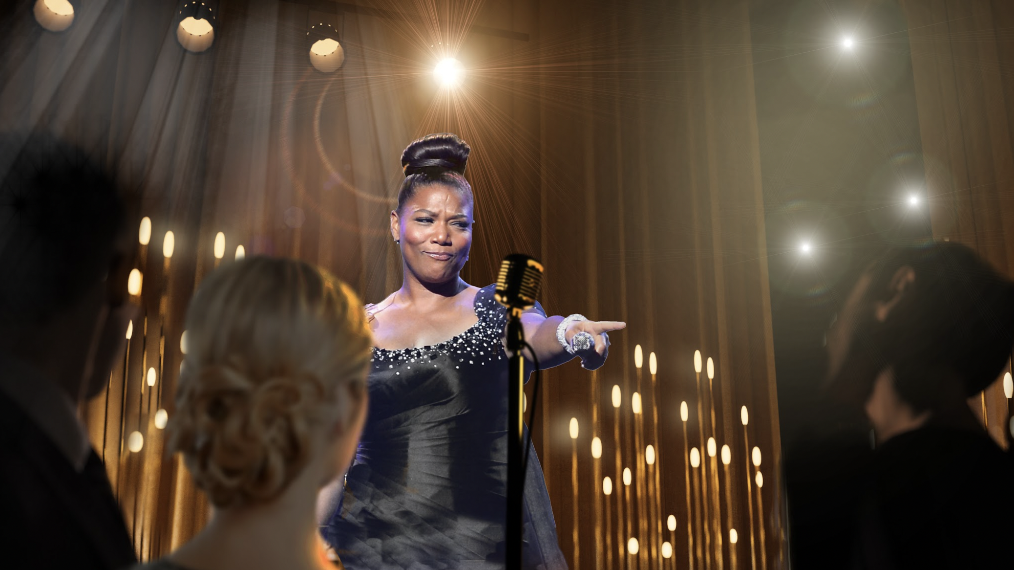 I had never done this before, but because of the time constraints for the builds, I used MidJourney AI to create some mood references for the build of Queen Latifah singing from a low angle. Once I had some references I liked, I shared them with my illustrator, who was able to render what I wanted very quickly. Initially, I was conflicted about using AI, but I viewed it as a quick communication tool to streamline the rendering process.
