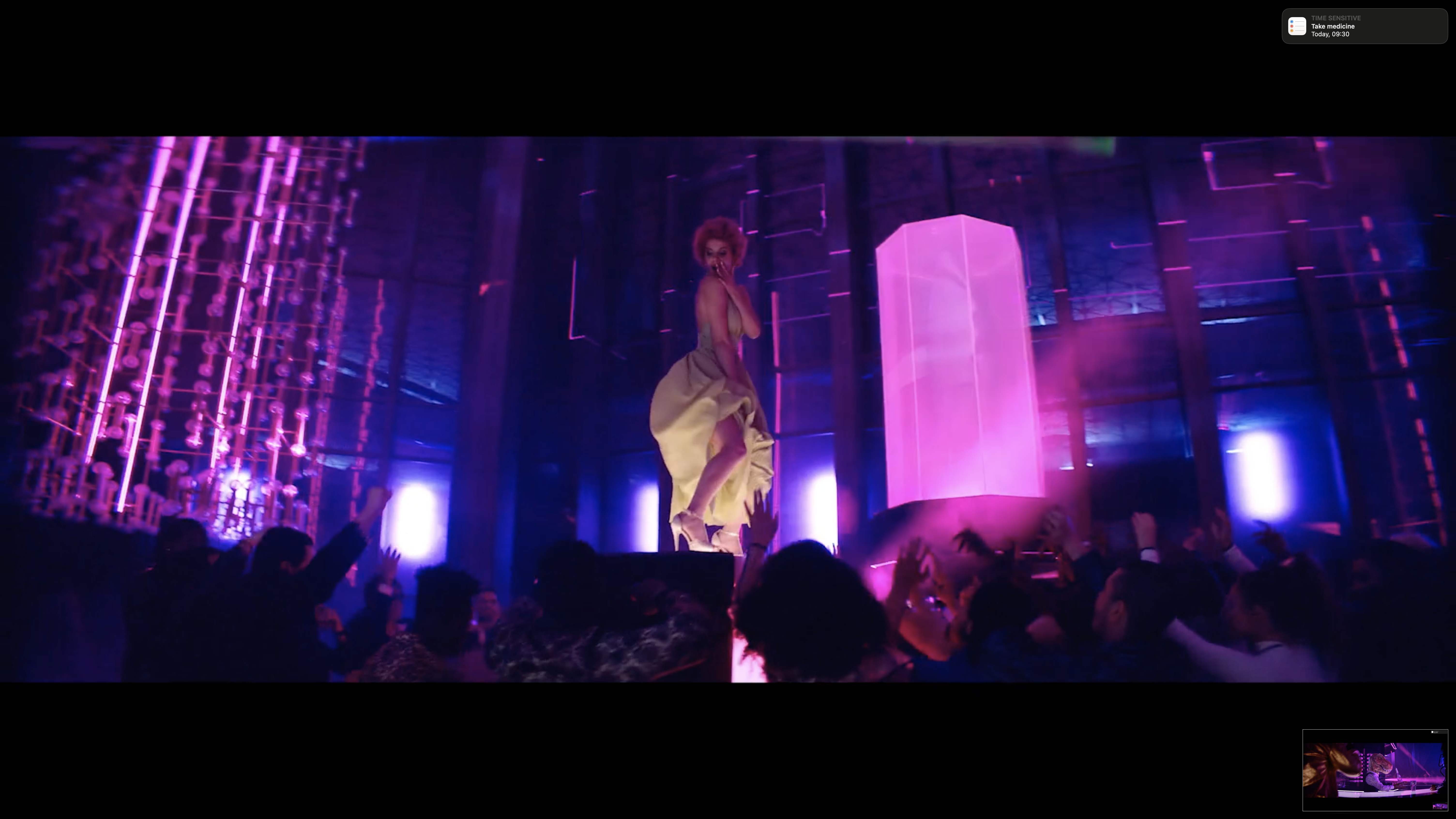 After submitting an estimated budget late Friday, I didn't hear anything more about the project until it booked the following evening. Between Saturday night and Wednesday morning, we worked tirelessly, and everything happened at lightning speed. My strategy was to design with simplicity and dazzle with lighting. Our incredible set decorator, Keri Lederman, with the backup of the indispensable Kim Fischer, was able to locally source existing light fixtures that closely matched what had been established in full-length spot. Those fixtures did a lot of the heavy lifting for the Queen Latifah insert.