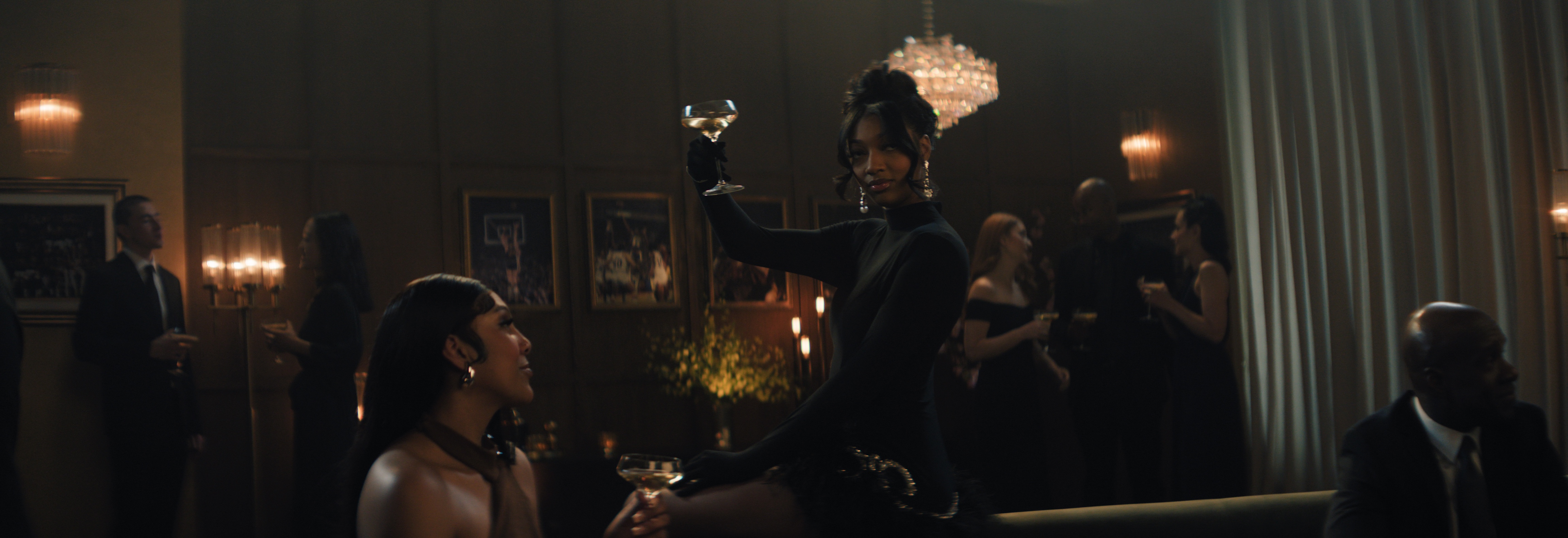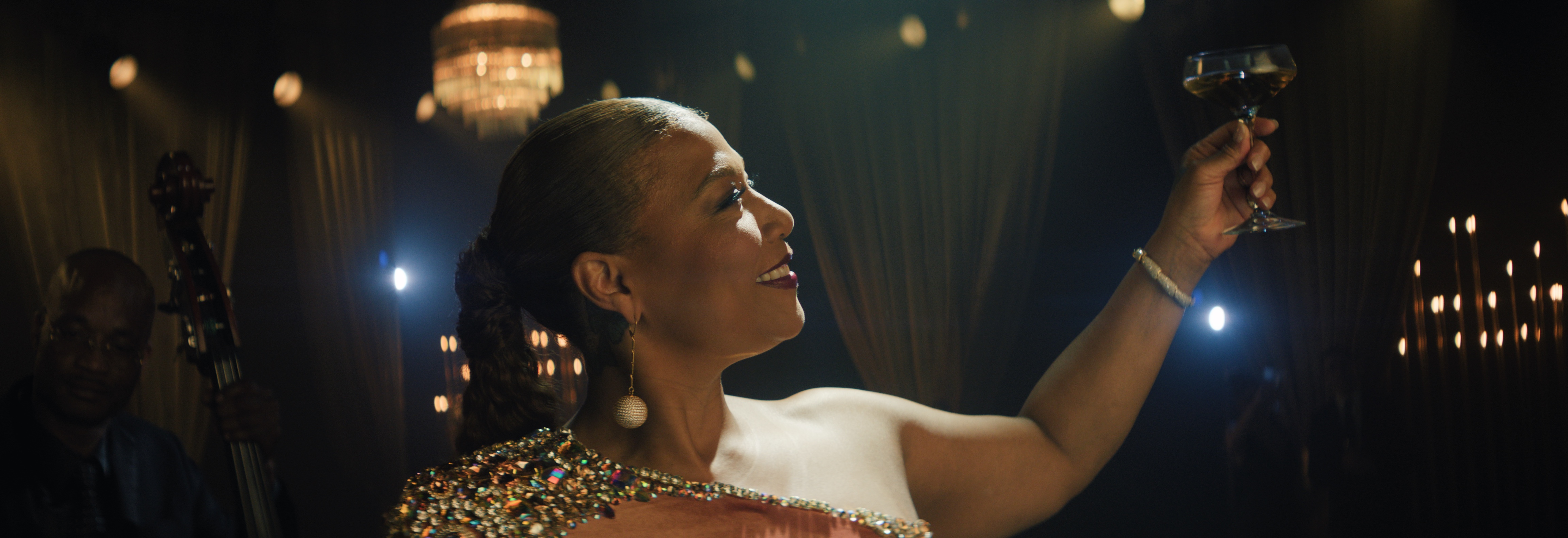 Ultimately, the creative process was much the same as any project. I started with research; after studying what had been filmed and cut together, I isolated what we needed for the inserts and put some numbers together. LA designer Dylan Kahn and his team did an incredible job creating a Great Gatsby meets NBA Final party at a high-end 1920s club location, a luxurious black, white and gold affair. The look had been established, and our task was seamlessly integrating Queen Latifah into that world. I could not speak to the designer during the process, mainly due to the insane turnaround time, but Kahn's design work was clean and meticulous. I was able to get almost everything I needed from the edit. His ADC was very helpful, too. The research isn't always what you might expect it to be. Reverse designing and only having one day to do it was tricky but fun.