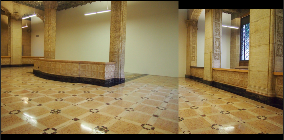 After a few days of scouting we landed on a defunct bank location for the training gym. Its marble columns provided scale and substance, and made it possible to extend the set in post if needed.
