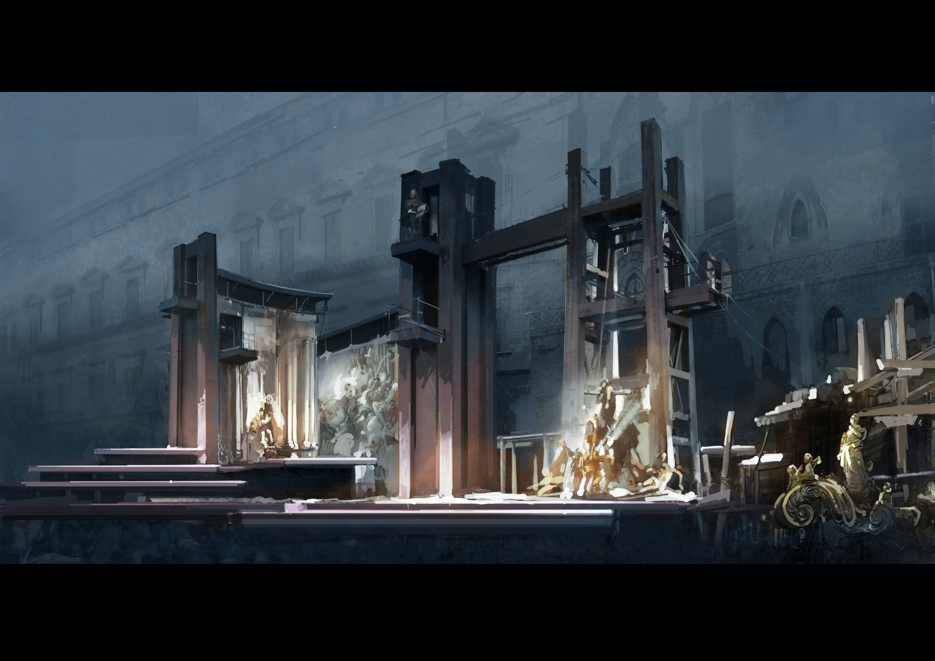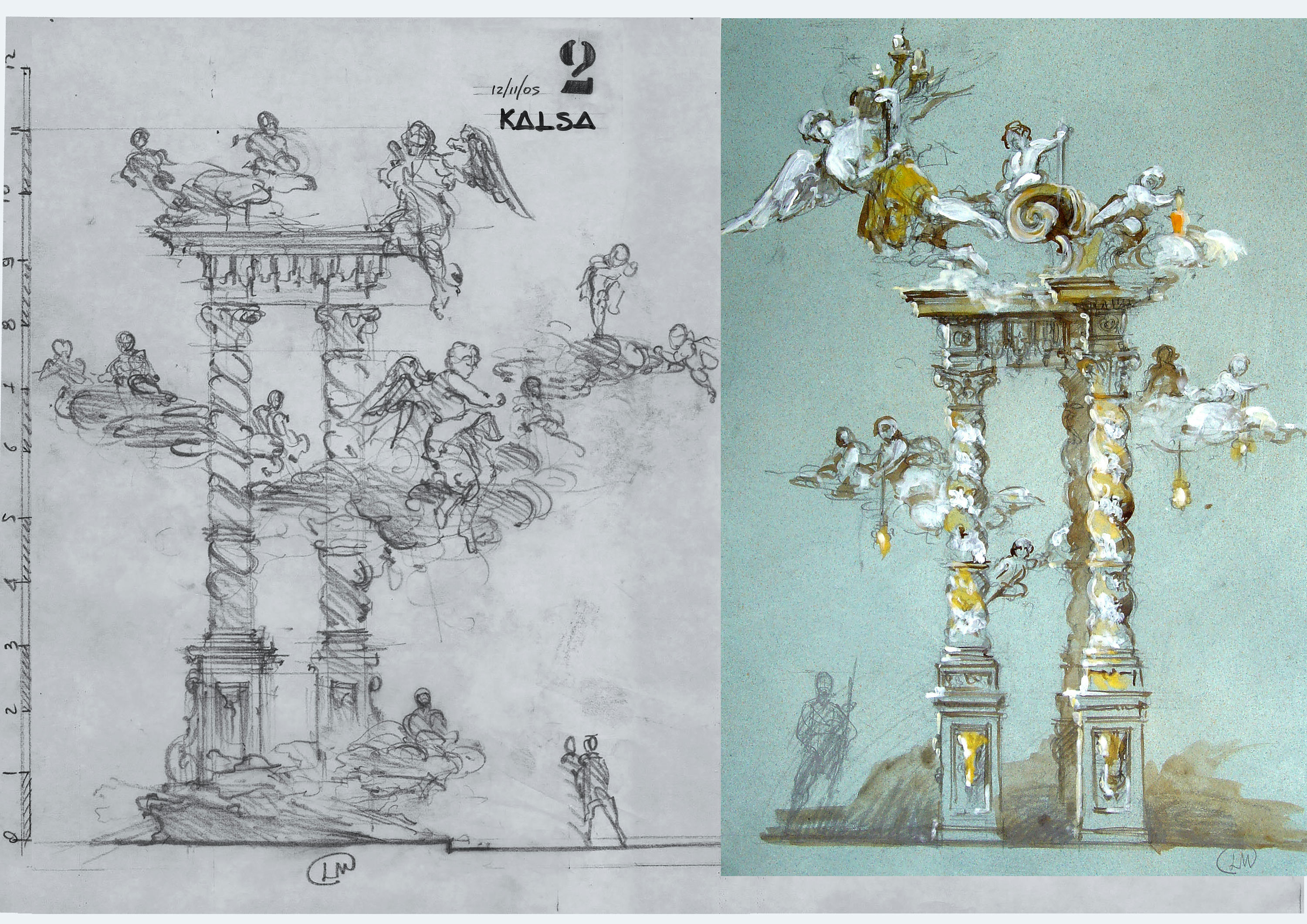 I never stop to try to enjoy a movie with half-closed eyes and I always appreciate that, in the cinematographic image, the glance that leaves its impression in the viewer's gaze is fundamental. For this reason, before starting to design a new set, always based on the script and the conversation with the director, I create a focus of inspiration through a mix of different materials such as references and images taken from art books. It's an intense brainstorming that guides my inspiration to interpret and compose with quick sketches, usually like a pencil drawing to recall “that impression”.