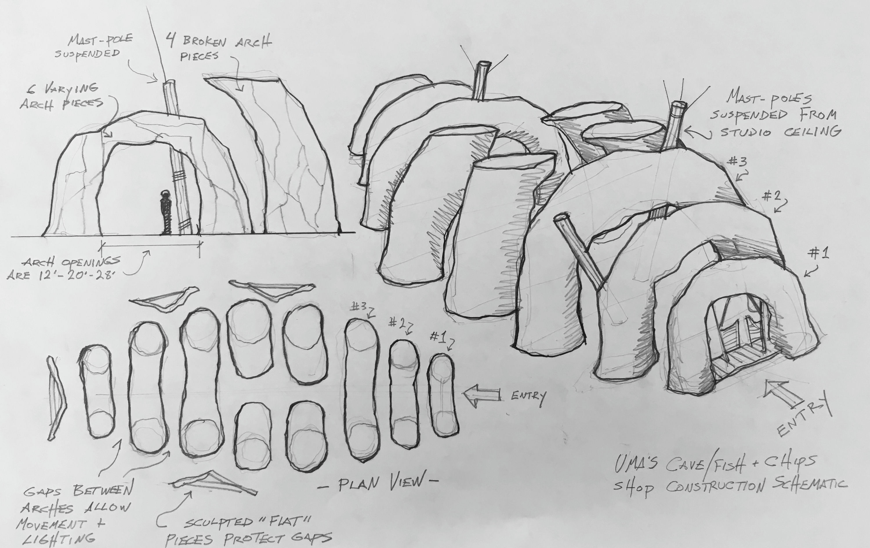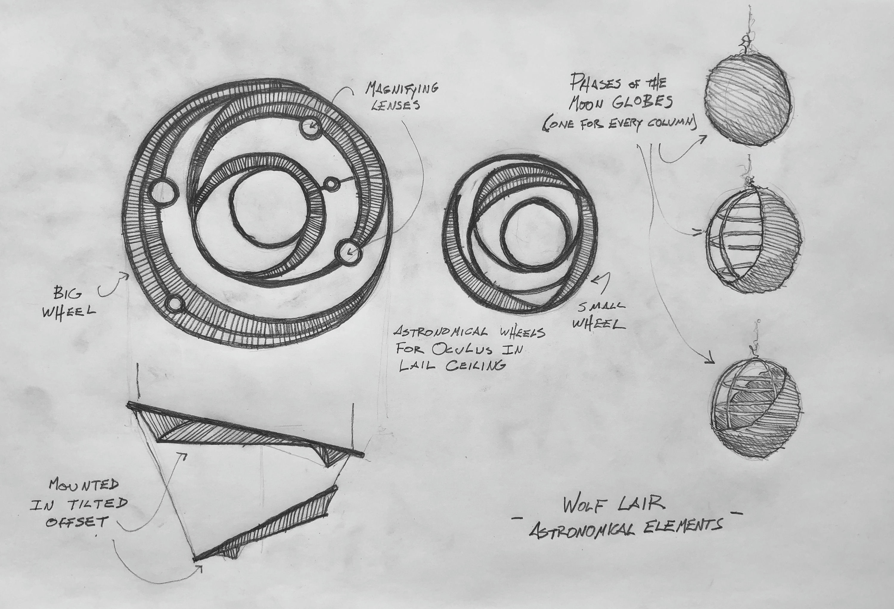 Because the bulk of my work in the past 15 years has been in the conceptual, fantasy based world of musicals, most of what I'm asking my team to build or hunt down are not "off-the-rack" ideas or objects. So, being able to show them a sketch of a bizarre, analogue arcade game made by a fallen Disney Villain stuck on a prison island where nothing new has arrived in 40 years, or the ancient astronomical objects in a werewolf society’s lunar observatory is critical.