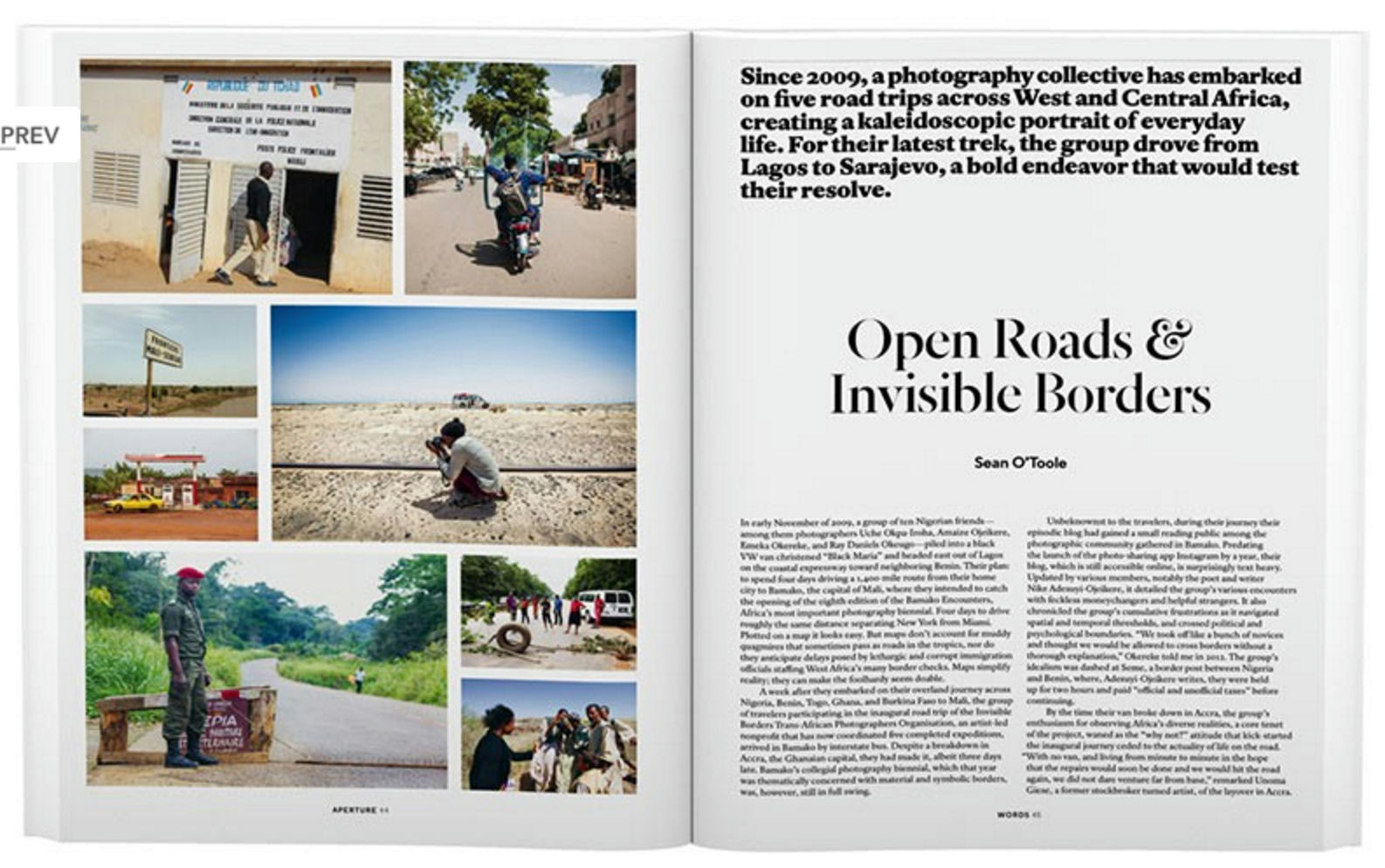 Invisible Borders is a photography collective started in Nigeria in 2009. Their flagship project is The Invisible Borders Trans-African Road Trip, where about a dozen artists (including photographers, writers, filmmakers and performance artists) collectively take road trips across Africa to explore and participate in various photographic events, festival and exhibitions while engaging on a daily basis with the environment and the people encountered. Sean O’Toole tells of the groups various trips acorss Africa and their evolution into a dynemic African-centric organization inspiring all African artists.