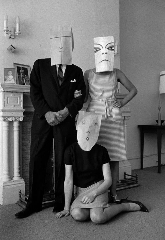 The meeting resulted in a collaboration often referred to as the “Mask Series”, portraying a range of figures wearing various cardboard box and paper bag masks created by Steinberg. The earliest pictures begin with Steinberg in his own apartment, simply modeling masks that reflect variations of his own alter-ego. But gradually, as Steinberg’s masks developed and evolved over the years Morath’s photographs also became more dynamic and improvisational.