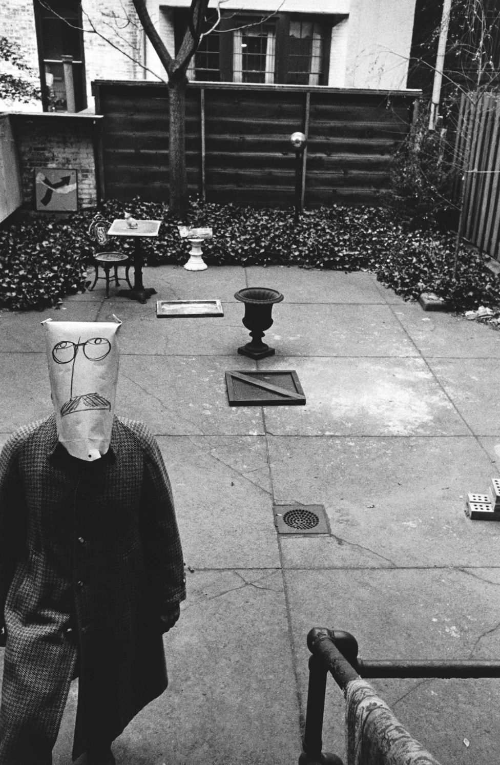 Magnum photographer Inge Morath met artist Saul Steinberg in New York in 1956. "I rang the bell and Saul Steinberg came out wearing over his head a paper bag on which he had drawn a self-portrait.”