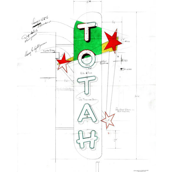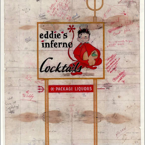 Art professors and neon enthusiasts Mark C. Childs and Ellen D. Babcock rescued a collection of neon signs' work drawings from moldy storage and obscurity to create this publication. The book presents a beautiful collection of of historic Route 66-era sign drawings, made by the Zeon Corporation during the 1930-1960s. In addition, the authors discuss the working methods of design and construction and the craft of drafting techniques during this innovative era of American sign making.