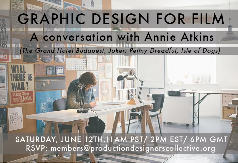 We will be talking to graphic designer Annie Atkins (The Grand Hotel Budapest, Joker, Penny Dreadful, Isle of Dogs) about her collaboration with production designers and her recently published book "Fake Love Letters, Forged Telegrams, and Prison Escape Maps: Designing Graphic Props for Filmmaking".