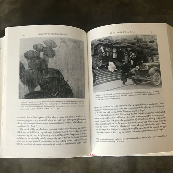 The book draws from interviews with collaborators and family members, as well as Menzies' personal collection of original artwork, correspondence and scrapbooks. The result is a highly detailed account, a window into a different era and the beginnings of the production design profession.