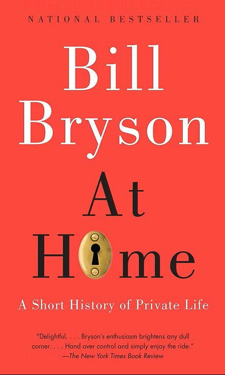 Author Bill Bryson uses his own home, an English Victorian parsonage, as a springboard to exploration - while journeying about his house from room to room, he decided to “write a history of the world without leaving home.” Bryson uses each room to explore the vast history of the domestic artifacts we take for granted and their larger context - the bathroom leads to a history of hygiene; the bedroom to sex, death, and sleep; the kitchen to nutrition and the spice trade, and so on.