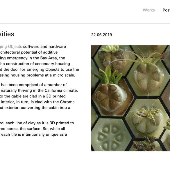 Ceramic Architectures is a digital platform whose aim is to develop a database specialized in building works where ceramics are used as a main material in the design. The website is an initiative of the Ceramics Chair of Valencia that studies the links between ceramic materials and architecture. It is aimed at technicians, students and researchers in the field of architecture and design, and was conceived as a dynamic channel of knowledge transfer between the productive and professional sectors to provide a solid basis of knowledge on the ceramics products used in architecture.