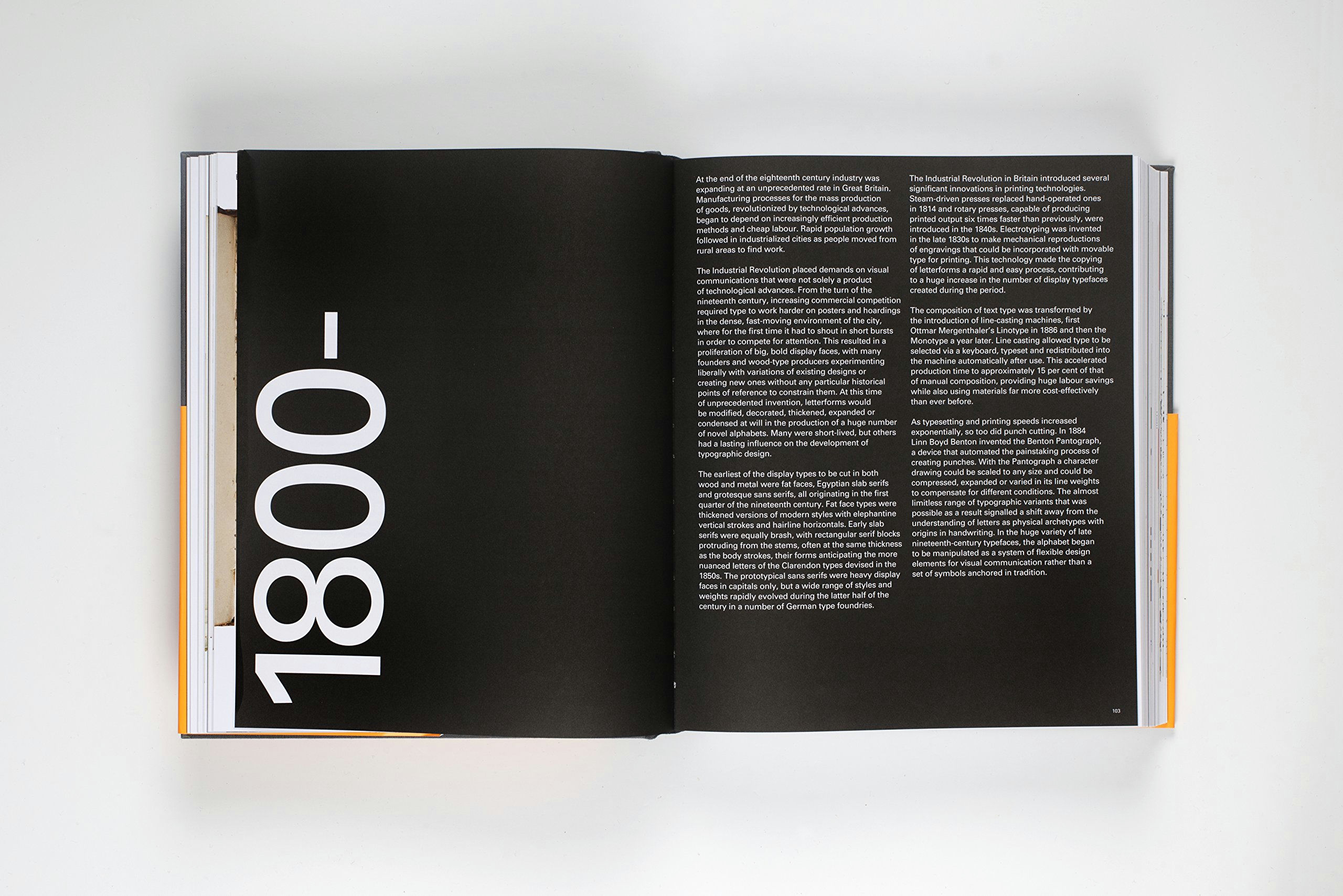 The Visual History of Type is a comprehensive, detailed survey of the major typefaces produced since the advent of printing with movable type in the mid-fifteenth century to the present day. Arranged chronologically to provide context, more than 320 typefaces are displayed in the form of their original type specimens or earliest printing. Each entry is supported by a brief history and description of defining characteristics of the typeface.
