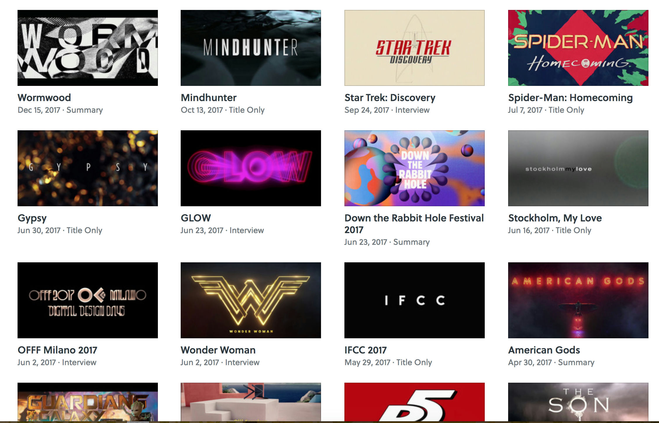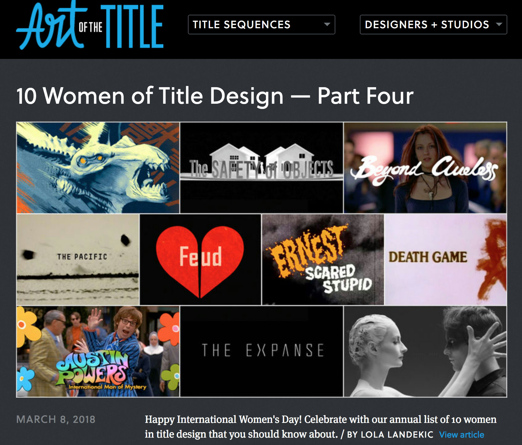 Art of the Title is an online publication for title sequence design, spanning the film, television, conference, and video game industries. Featuring title design from countries around the world, honoring the creators and innovators who contribute to the field, discussing and displaying their work with a desire to explicate, facilitate, and instigate.